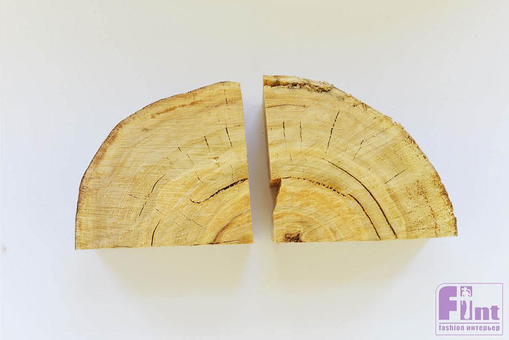 Перед началом работ по изготовлению необычного держателя для книг, следует осмотреть торцевой спил, который вам удалось найти. Если у вас имеется целый торцевой спил, его потребуется распилить ровно пополам. Если вы уже нашли половинку спила, достаточно её тщательно обработать наждачной бумагой, чтобы удалить заусенцы и сколы дерева. Проверьте, насколько ровно ваша заготовка стоит на горизонтальной плоскости. Если заготовка стоит ровно, её можно распилить на две равные части. В принципе, наш держатель уже готов! Но мы добавим ему немного цвета.