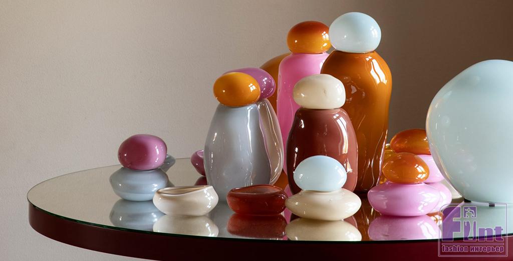 Дизайнер из Дании Хелле Мардаль облекла детские воспоминания о красочных витринах кондитерского магазина в необычную форму: мечту о собственном конфетном прилавке она превратила в жизнерадостную коллекцию светильников и ваз.