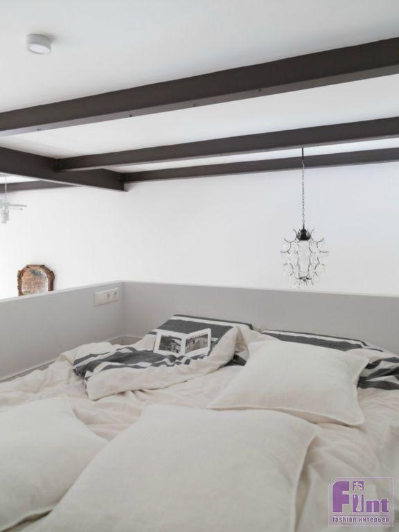 «Нашей ключевой задачей было максимально использовать высоту потолков и сохранить объём основной комнаты, не разделяя её на «клетушки», — рассказывает Иван. Так пришла идея создать конструкцию мезонина. На верхнем ярусе оборудовали приватное спальное место и системы хранения постельных принадлежностей — для реализации последнего опустили потолок в ванной комнате. Самое сложное, по словам дизайнера, заключалось в выстраивании планировки таким образом, чтобы на мезонине можно было стоять в полный рост. Поэтому изначально было около десяти вариантов планировки.