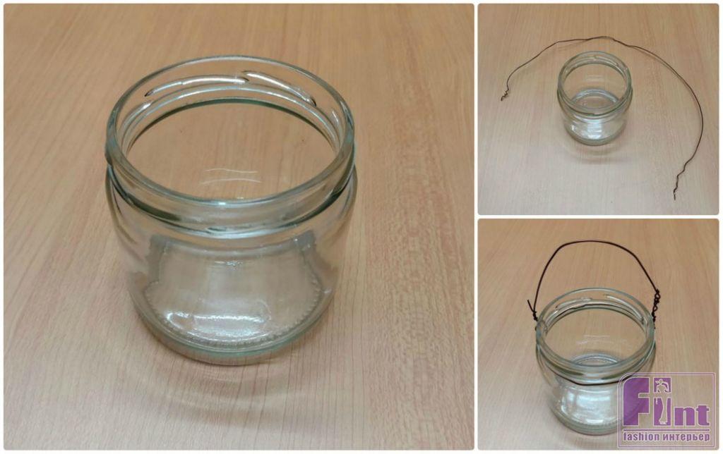 Шаг 2. Прикрепите к стеклянной банке отрезок проволоки