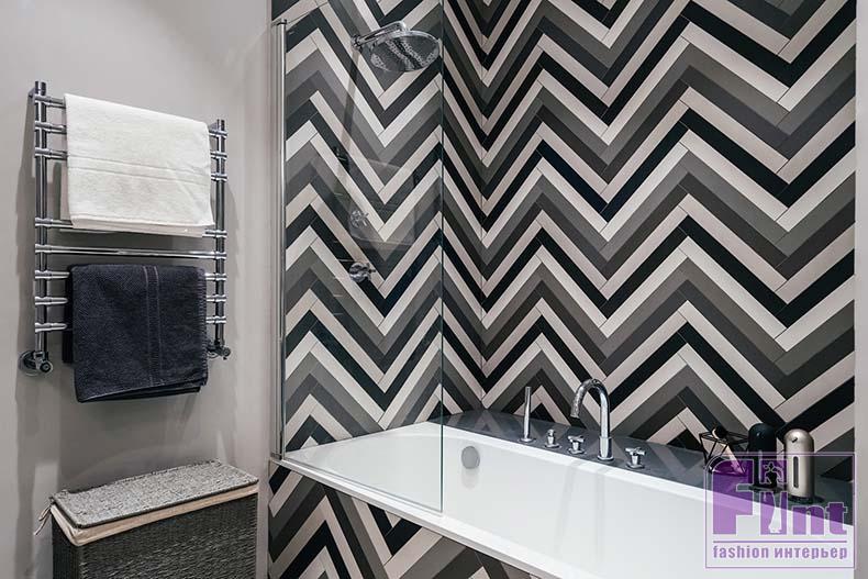 В этом проекте дизайнеры студии и её руководитель проявили себя по максимуму. Это выражается в цвете, принтах, геометрии и столярных решениях. Картины в квартире тоже из студийной коллекции живописи (автор картин Сапунков И.Г. ). В ванной комнате «поселился» Микки Маус, заказчица очень любит этого персонажа, и Надя заказала чёрно-белый скетч, который повесили на стену рядом с раковиной. Текстильное решение для окон заказали в шторной мастерской.