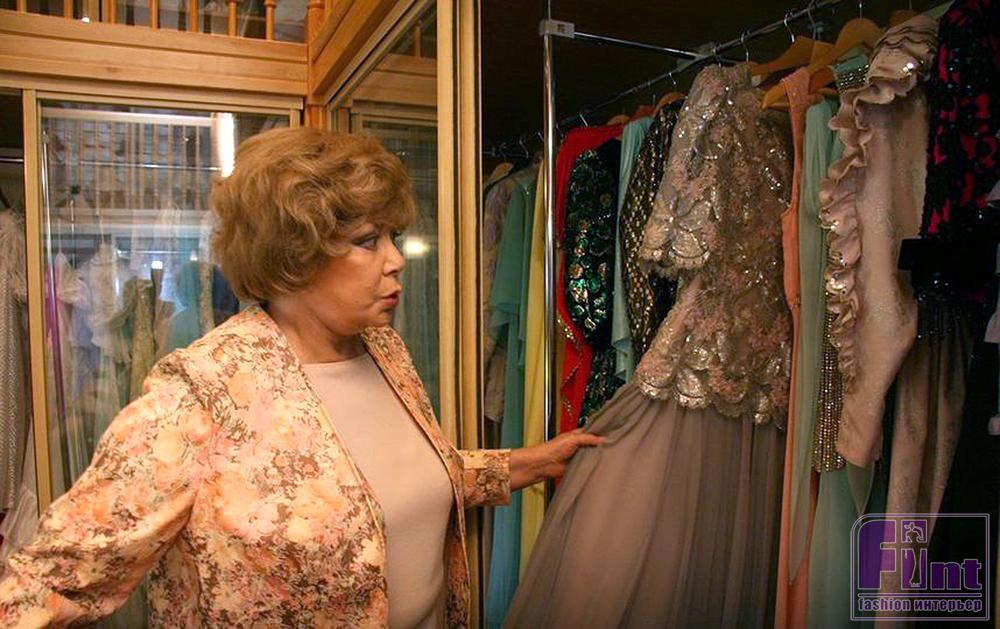 «Павильон» этот действительно уникальный. В нём собрано всё, связанное с творчеством, за 60 лет карьеры. На первом этаже – шкафы со стеклянными дверцами, а внутри концертные платья, стильные, яркие, в которых она выступала и продолжает выступать. Розовые, зелёные, золотистые… Темное одно-единственное – синее.