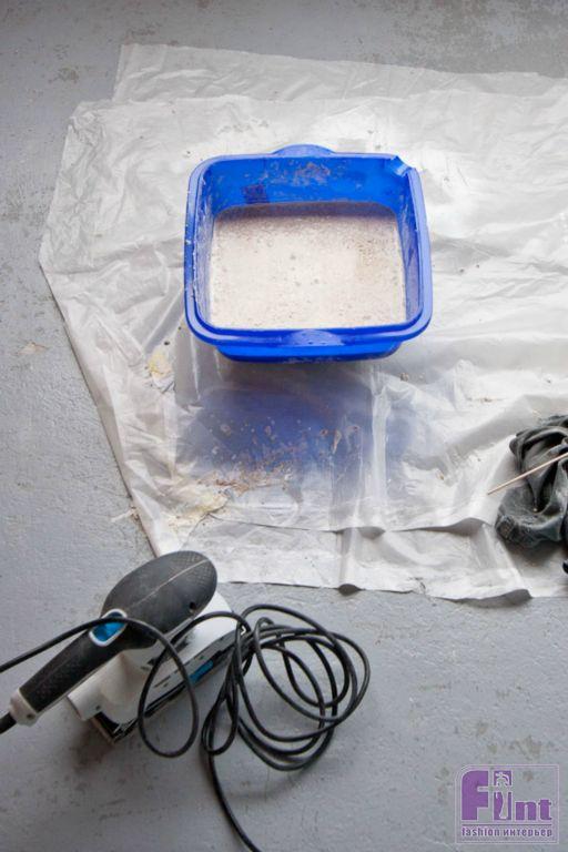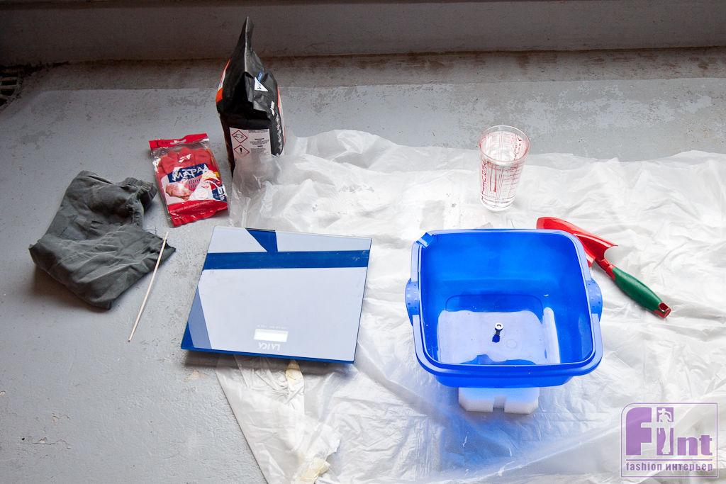Готовим раствор и заливаем основу когтеточки