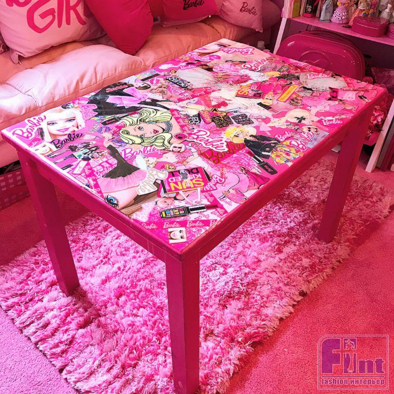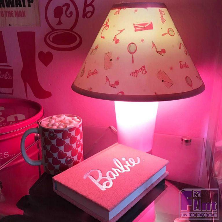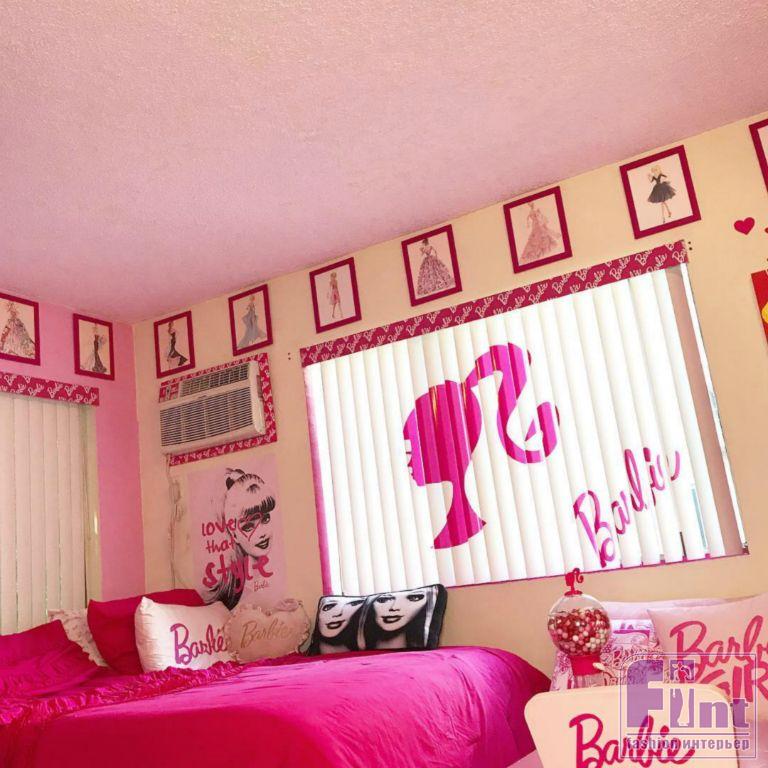 Спальня буквально кишит изображениями Барби. Жалюзи закрыты наглухо — видимо, чтобы не смотреть на мир, где слишком мало розового. Абажур тоже самодельный. Производители предметов интерьера пока не догадались выпустить такие. А могли бы озолотиться, учитывая всемирную любовь к длинноногой кукле.