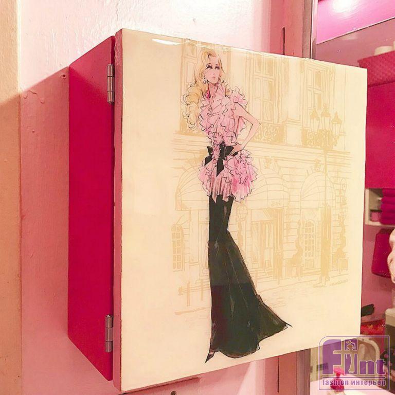 Дверцу этого навесного шкафа девушка сделала самостоятельно. В YouTube можно найти видео, где запечатлен весь процесс, — на случай, если кому-то захочется такую же.