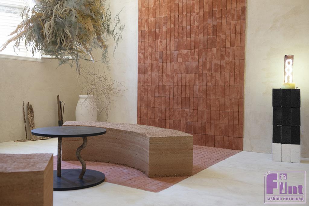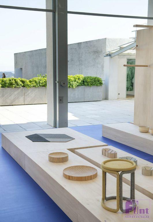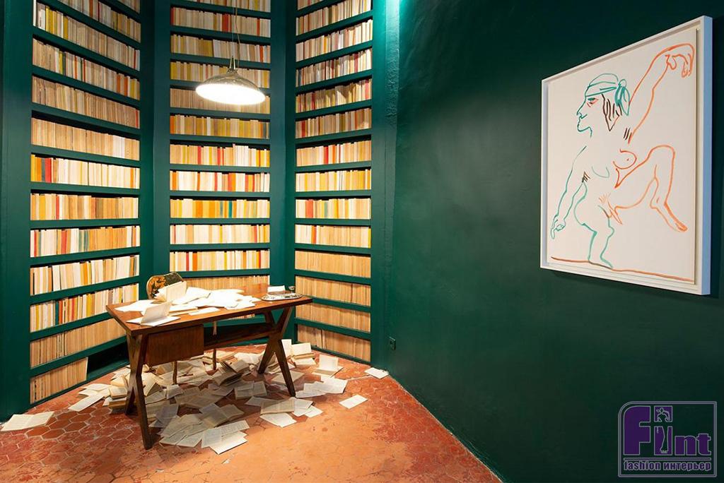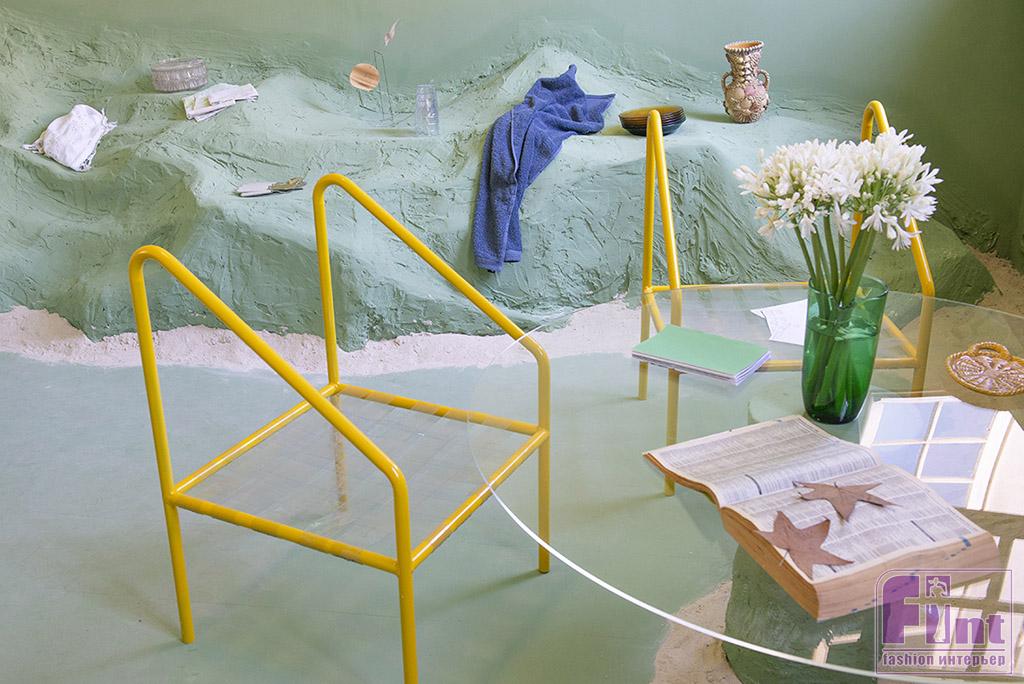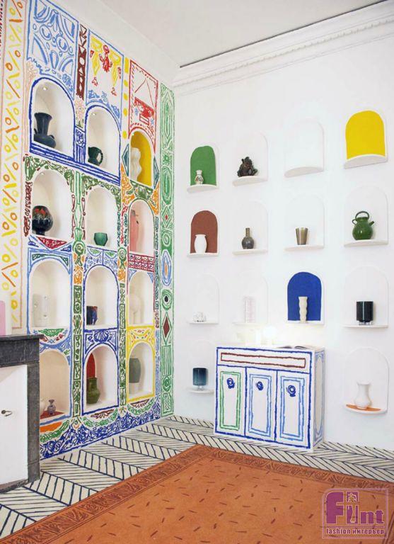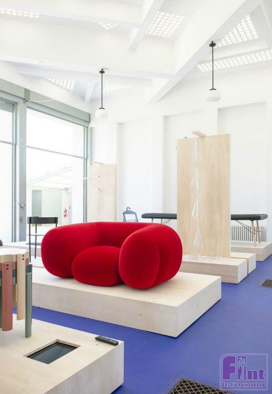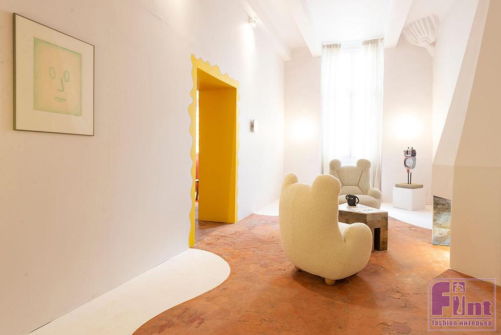 В других комнатах разместились инсталляции и объекты современных французских дизайнеров: акриловые стеллажи Жюльена Манерá, ротанговая мебель Франсуа Пассолунги, яркие вазы Мари Корниль.