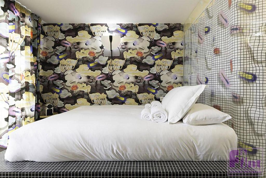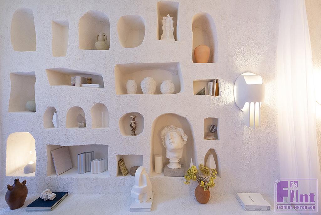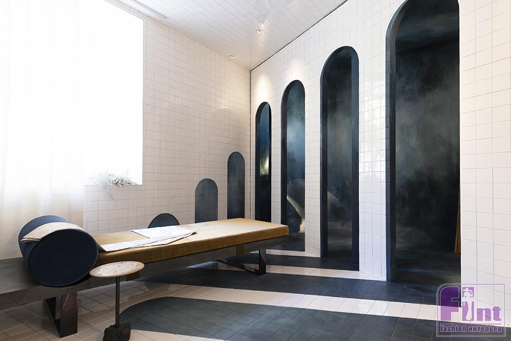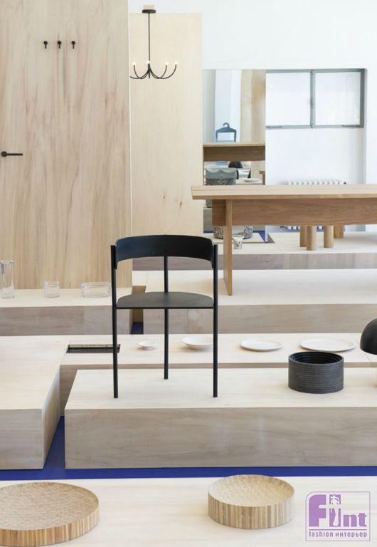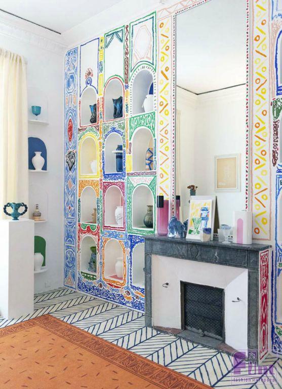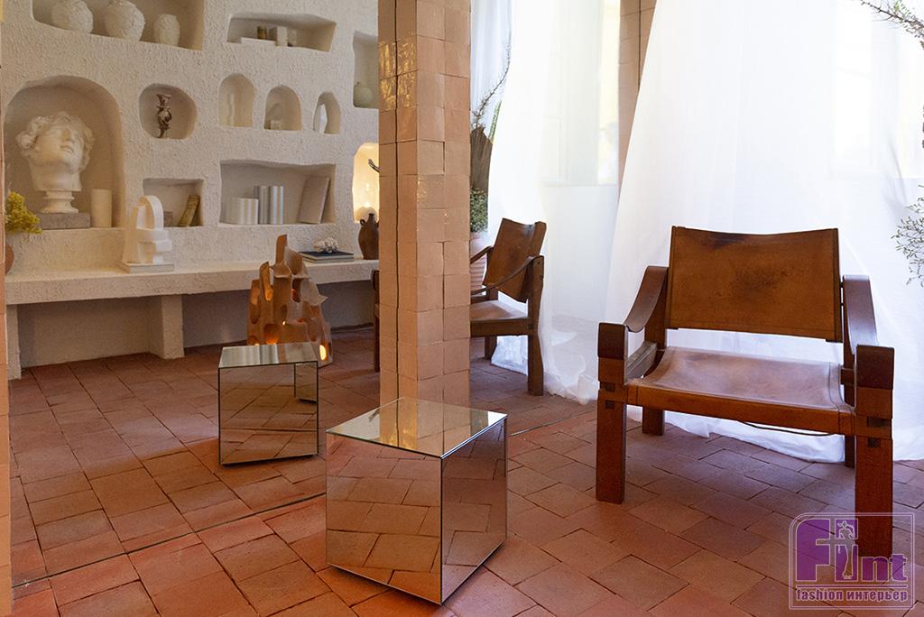 В других комнатах разместились инсталляции и объекты современных французских дизайнеров: акриловые стеллажи Жюльена Манерá, ротанговая мебель Франсуа Пассолунги, яркие вазы Мари Корниль.