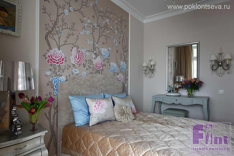Интерьер спальни дочери хозяев также прибавила дизайнеру хлопот. «Трудности в основном зависели от чёткости контроля исполнения и совмещения работы разных поставщиков. Так, например, шёлковые панно над изголовьем кровати в комнате дочери, расписывались вручную в Китае. У производителя уже был предварительный шаблон рисунка, но меня он абсолютно не устраивал, — рассказывает Марина. — Для меня сделали новый эскиз, учитывая все заявленные параметры, скорректировали цветовую гамму, а птиц поменяли на бабочек. Мои заказчики не вникали в такие тонкости и нюансы, а просто доверили работу мне, а на выходе получили идеально подогнанную под рамки раскладку рисунка панно на стене».
