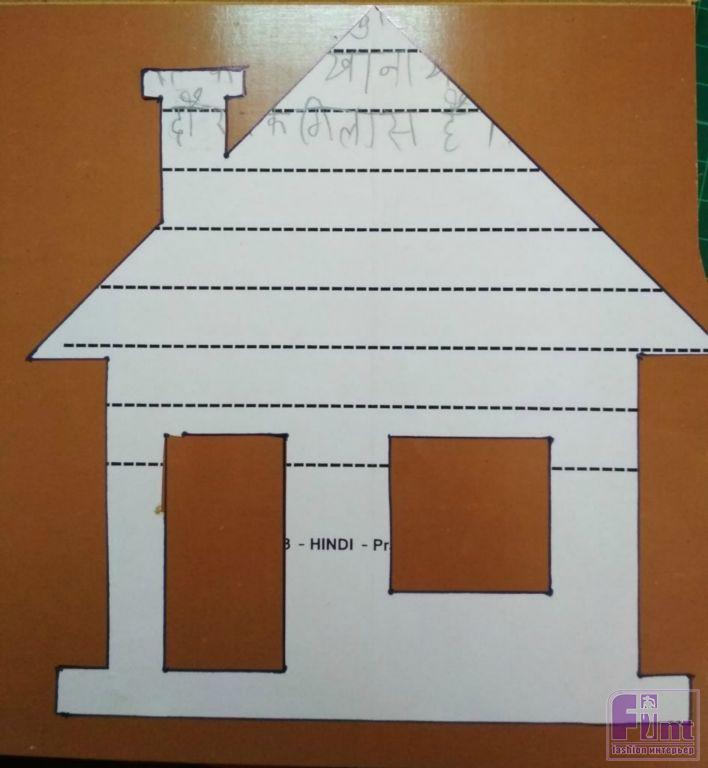 Для изготовления ключницы нам потребуется шаблон в виде стилизованного деревенского домика с дверью, окном и трубой на крыше. Изображение можно найти в интернете или же нарисовать его самостоятельно. Нарисуйте или распечатайте шаблон на листе бумаги подходящего размера. Вырежьте шаблон по контуру, удалив отверстия под дверь и окно.