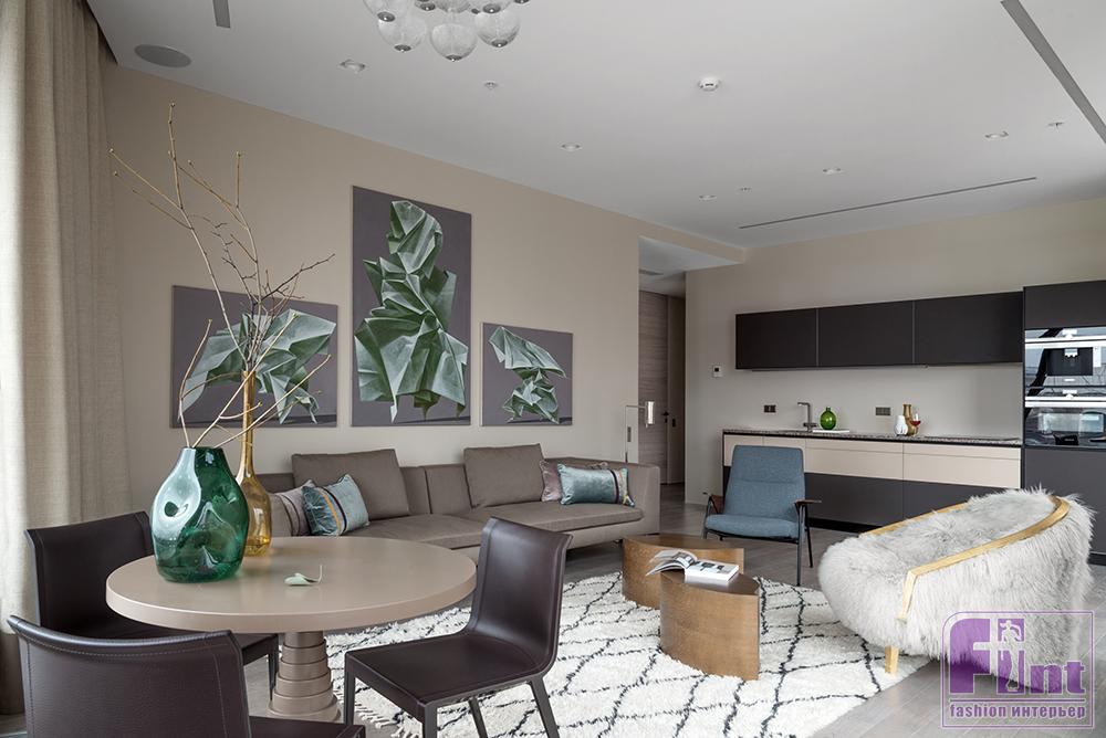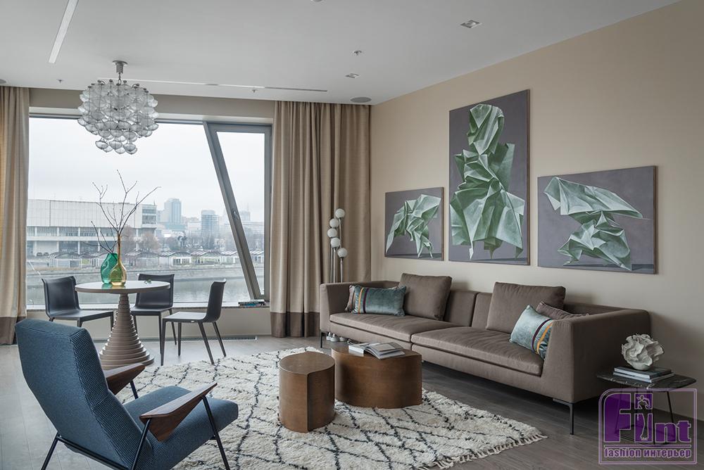 В работе над апартаментами на Пречистенской набережной в качестве отправной точки Наталья использовала концепцию отделки входной группы и зон общего пользования всего дома. А вид на Третьяковскую галерею вдохновил дизайнера на оформление пространства апартаментов современным искусством. Без объектов современного искусства не обошлось даже в санузле. Цветовой палитрой проекта были выбраны пастельные оттенки, а схожесть расположенного напротив апартаментов здания ЦДХ, со знаменитой венецианской жемчужиной архитектуры Палаццо Дожей привнесла в оформление апартаментов особый колорит и экзотические нотки итальянского стиля.