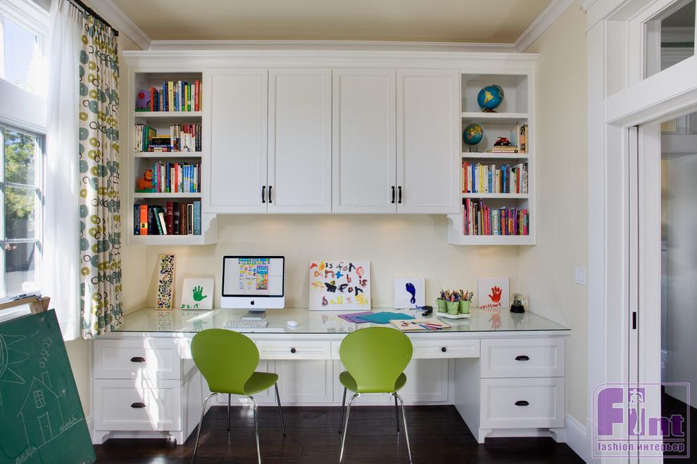 - В кухне. Даже, если она вместительная — вариант не самый удачный. Во-первых, кухня — это место не только для приготовления пищи, но и для постоянных посиделок, встреч, чаепитий, выяснения проблем и вопросов и пр. Сосредоточиться на учёбе ребёнок просто не сможет. Во-вторых, кухня — это еда, с которой учебники совершенно несовместимы.
