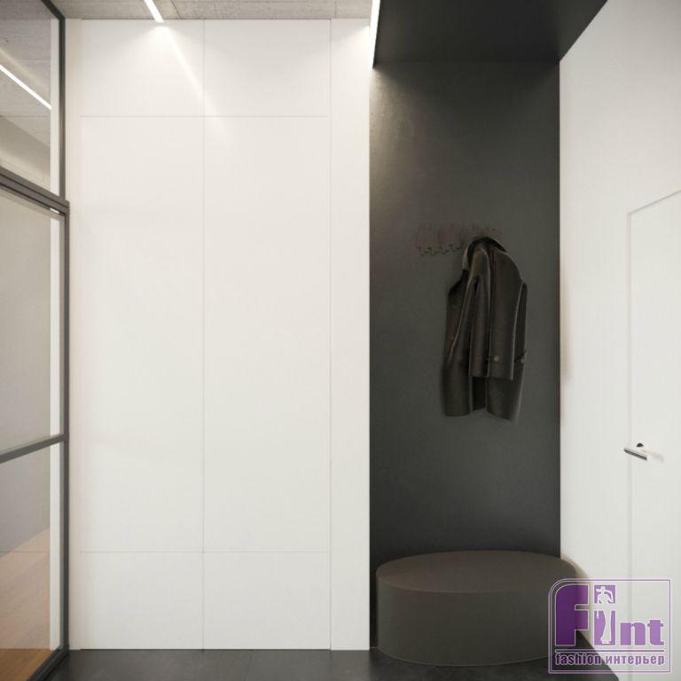 Одним из главных пожеланий заказчиков была гардеробная. Рустэм выделил под создание гардеробной комнаты часть прихожей, которая, благодаря светлому цвету стен и разумному минимализму не стала выглядеть тесной и не потеряла в комфорте. Сама гардеробная сформирована из огромных встроенных систем хранения с белоснежными глянцевыми фасадами.