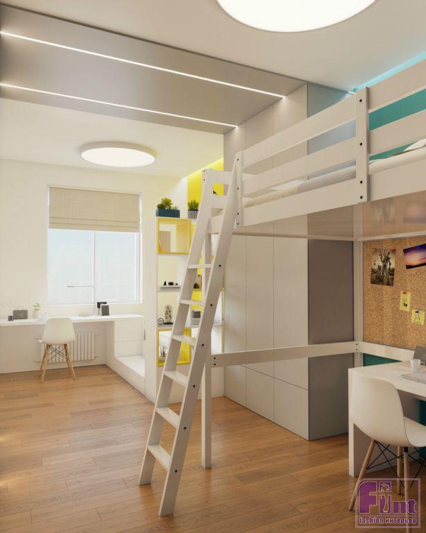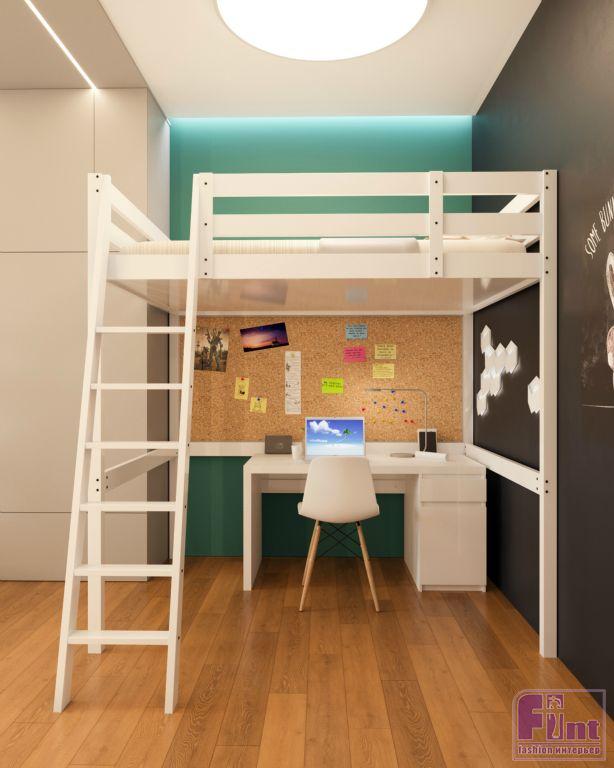 Благодаря продуманным интерьерным решениям в рамках выбранного стиля, дизайнеру удалось комфортно разместить в спальне небольшую рабочую зону, оборудованную на присоединённом к площади квартиры балконе. В этой зоне могут отлично соседствовать два человека, поскольку у каждого из них будет своё рабочее пространство.