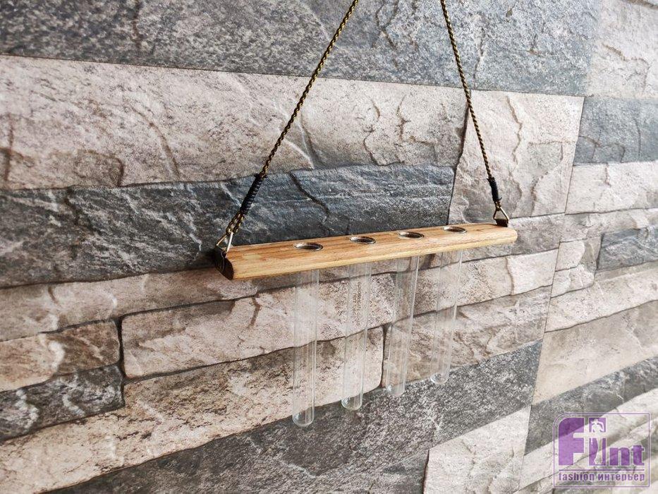 Осталось установить в наше кашпо пробирки, наполнить их водой и поставить в них подходящие по размеру и форме живые растения. Теперь наше кашпо готово и его можно повесить на стену, чтобы украсить свой дом стильным и необычным аксессуаром!