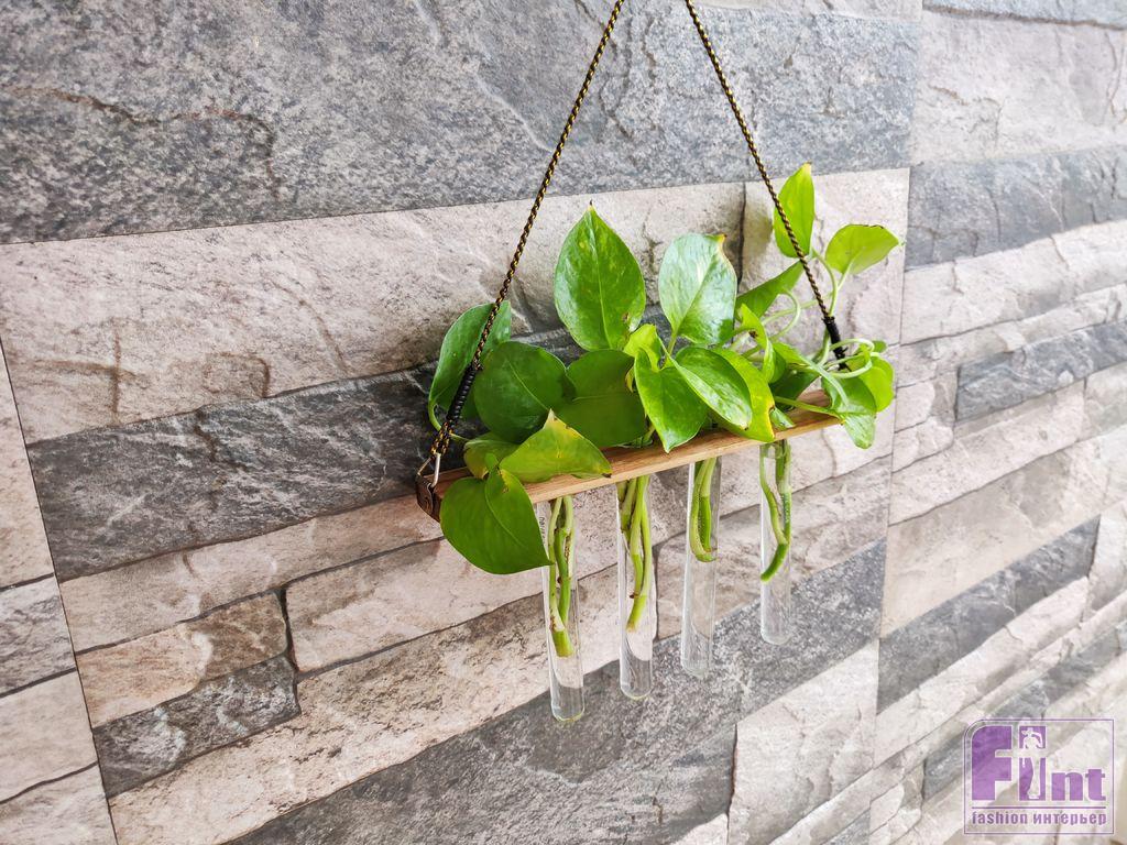 Осталось установить в наше кашпо пробирки, наполнить их водой и поставить в них подходящие по размеру и форме живые растения. Теперь наше кашпо готово и его можно повесить на стену, чтобы украсить свой дом стильным и необычным аксессуаром!