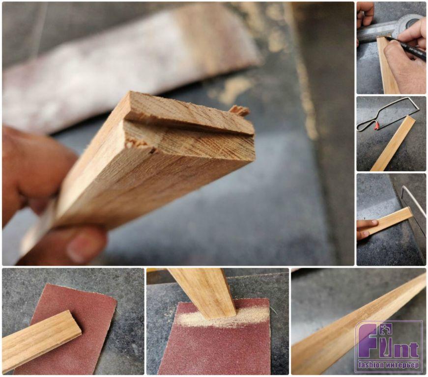 Для изготовления нашего стильного кашпо нам потребуется брусок с длиной 220 мм, шириной 30 мм и высотой 10 мм (толщина). Лучше всего, если у вас уже будет деревянная планка подходящих размеров, от которой нужно будет всего лишь отпилить нужную длину. Если ширина и высота вашего бруска будут немного отличаться – не беда. После отпиливания, обработайте места спилов наждачной бумагой.