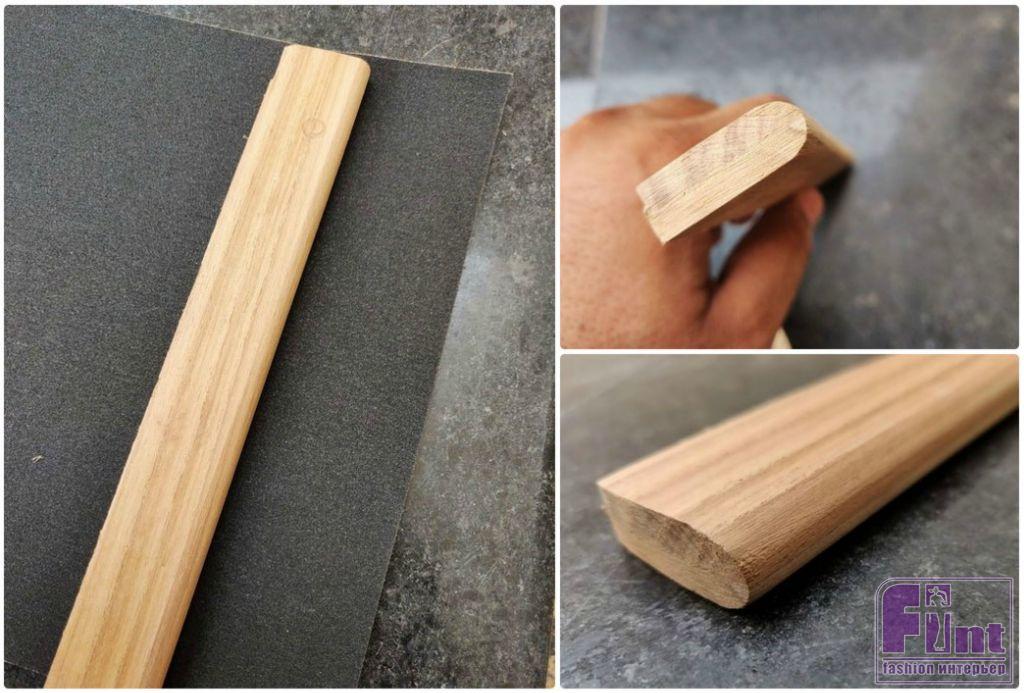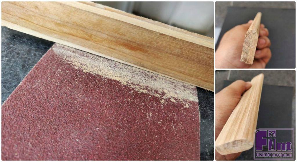 Подготовленный по размерам брусок необходимо обработать с помощью наждачной бумаги, чтобы сделать лицевой торец бруска полукруглым. Начинайте с довольно крупной наждачной бумаги и переходите к более мелкой, чтобы качественно ошкурить брусок и сделать его ровным и удалить заусенцы и сколы.