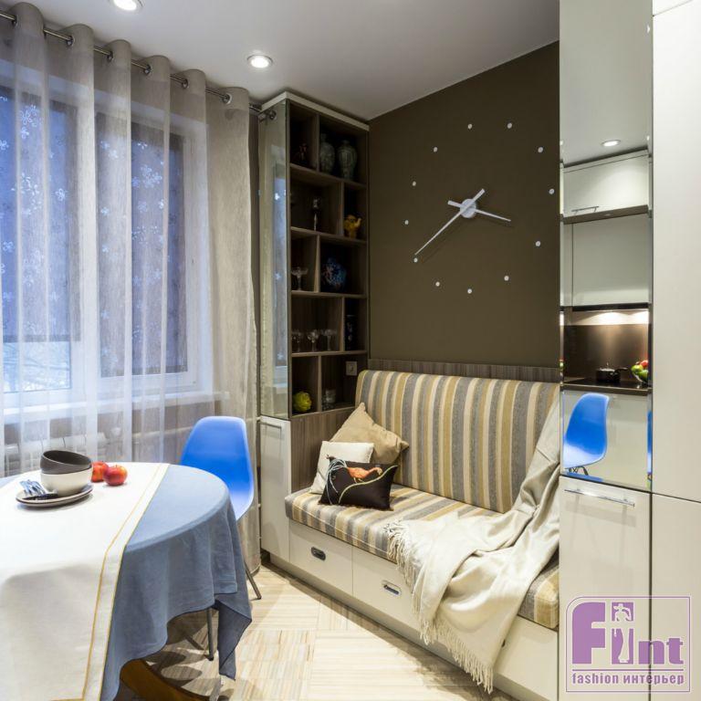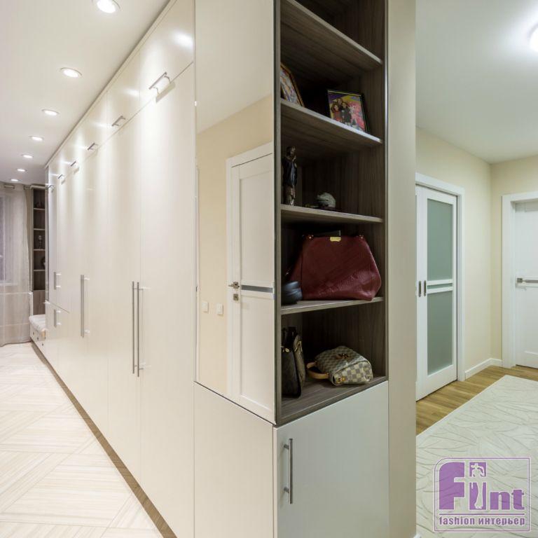 Перед началом работ демонтировали старое напольное покрытие, двери и обои, освободили квартиру от старых громоздких шкафов. «Практически вся мебель выполнена по моим продуманным до мелочей чертежам, где было предусмотрено много мест для хранения, не перегружающих квартиру, — рассказывает Анастасия. — Визуально это удалось сделать за счёт использования светлых тонов и зеркальных поверхностей».