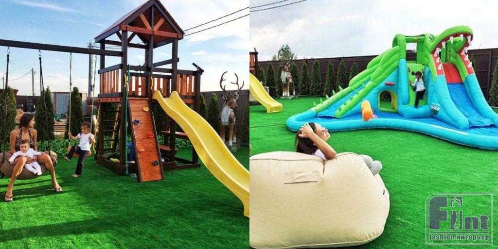 Оксана, как и её супруг, любит проводить время дома с детьми, но не забывает ощущать себя женщиной и баловать приятными банными процедурами. Также стоит отметить наличие бассейна в современном стиле и красочной детской площадки во дворе дома. Родители сделали для своих дочек отличную детскую площадку для игры на свежем воздухе, воплотив в жизнь мечту многих детишек, иметь свой собственный парк аттракционов. Здесь на зелёной лужайке возле дома дочки звёзд российского шоу-бизнеса могут играть и веселиться сколько угодно. Уютные пуфики-кресла дают возможность родителям девочек наблюдать за их игрой.