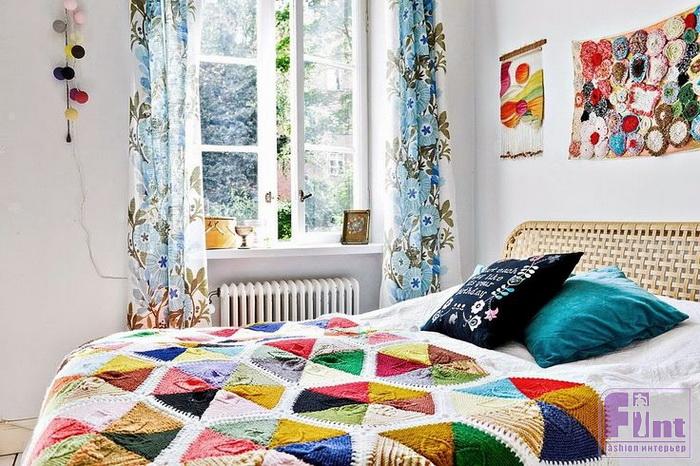 Как использовать вязаные пледы и покрывала в интерьере