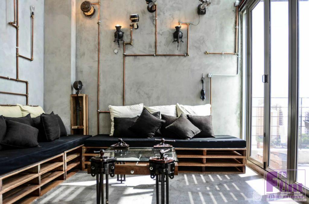 Второй способ маскировки является немного неожиданным и провокационным. И действовать здесь следует по старой мудрой поговорке «Если хочешь спрятать дерево – спрячь его в лесу». Эстетика труб в интерьере многим нравится. Особенно если вы поклонник интерьерных стилей техно, лофт и индастриал. По этой логике нужно не убирать трубы отопления, а добавить труб в интерьере, «спрятав» стояки среди других труб, создающих декор в помещении! Различные светильники из труб, полки, коллажи и т.п. Всё это поможет сделать трубы отопления «невидимыми» на фоне сплетения других декоративных труб.