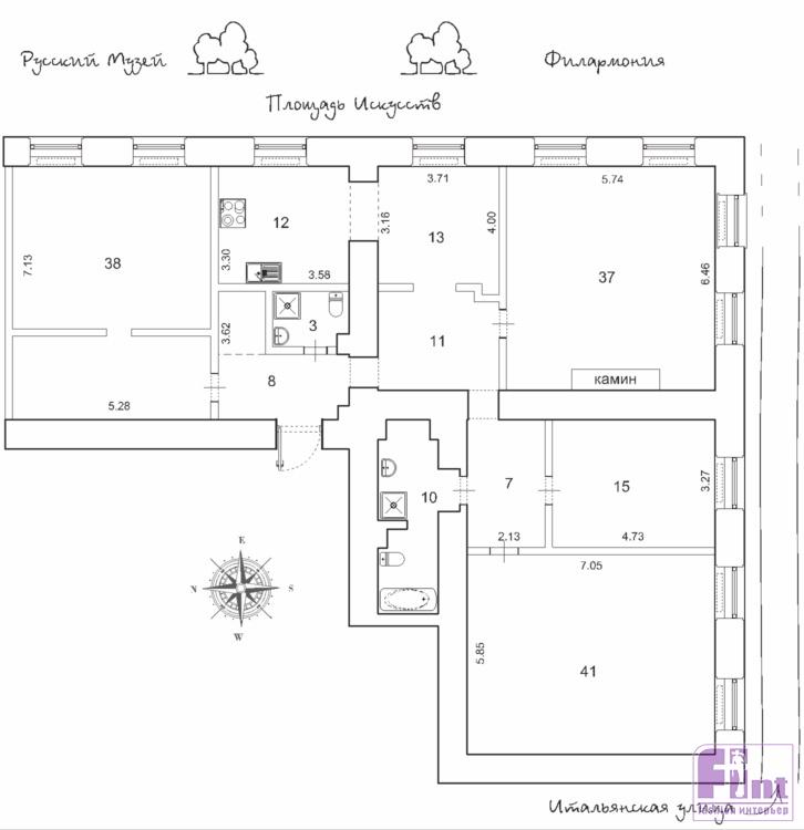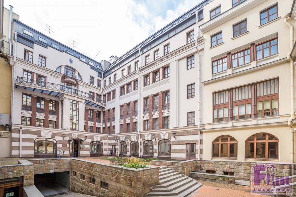 Квартира Анастасии Волочковой — угловая, на третьем этаже здания. Шесть окон выходит на площадь Искусств, еще пять – на Итальянскую улицу. В угловой комнате находится камин, ещё в одной — балетный станок, как обязательный элемент всех домов и квартир балерины. Дизайн для апартаментов разрабатывала сама балерина: пол – паркет, на стенах – венецианская штукатурка и зеркала в резных рамах, на потолках – пухлые амурчики ручной росписи, лепнина и позолота.