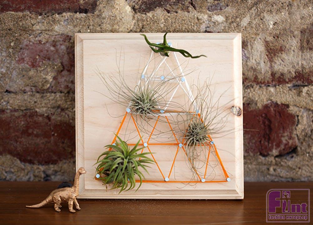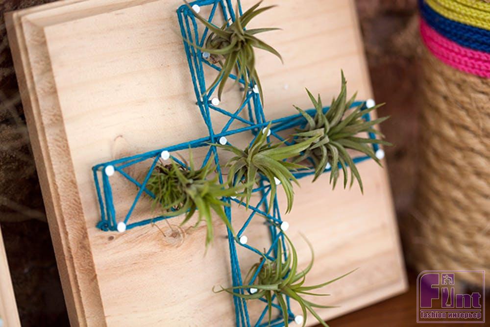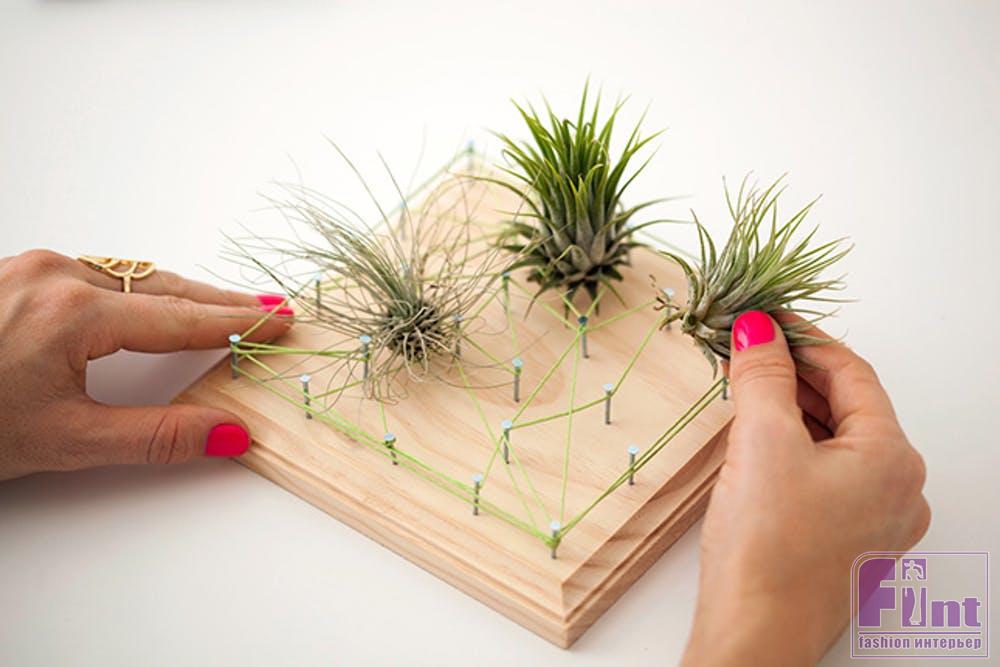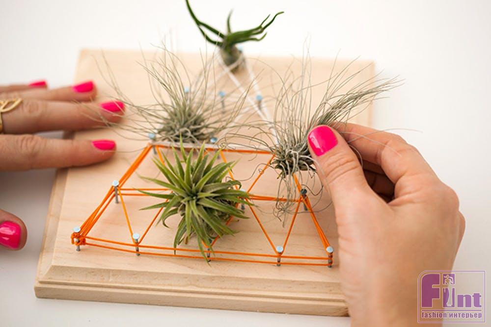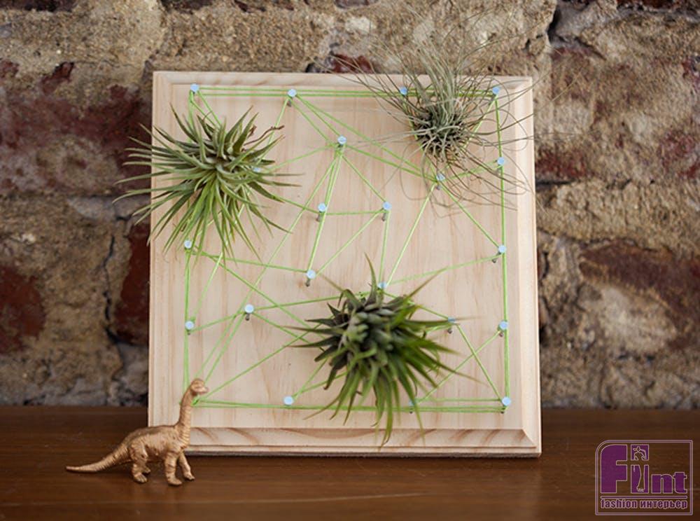 Теперь останется лишь поместить ваши воздушные растения в «паутину» из ниток и наши необычные настенные панно готовы!