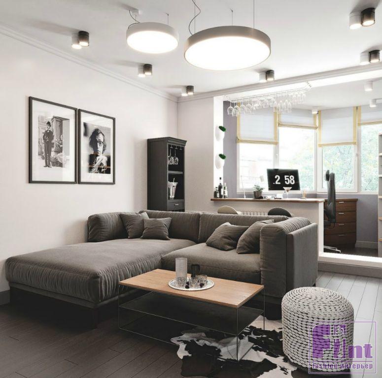 К Татьяне обратился молодой человек — московский студент известного юридического ВУЗа, которому родители купили двухкомнатную квартиру. Пожелания будущего юриста были обрисованы предельно чётко: монохромная серая гамма с умеренными вставками ярких цветов, контрастность, активные геометрические узоры, минималистичный, но нескучный стиль, а также место для бара. Двухкомнатная квартира расположена в ЖК «Первый Московский» в Новой Москве, в типовом панельном доме на довольно высоком этаже. Интерьер изначально проектировался в расчёте на одного жителя с перспективой возможной женитьбы молодого человека.