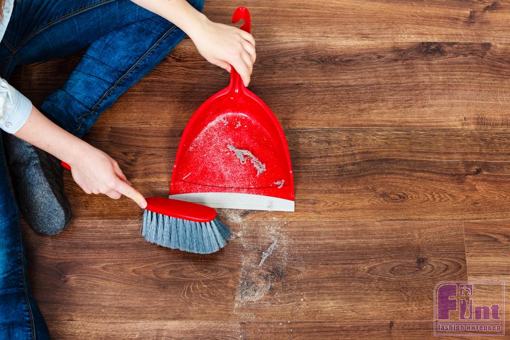 Если грязь преодолела целую полосу препятствий, устроенную на её пути из различных придверных ковриков и решёток, и всё же попала в дом, не спешите сразу мыть пол – всему своё время! Помните: куда проще убрать грязь в сухом виде, нежели влажном. Правда, затягивать с уборкой высохшей грязи также не стоит, иначе она перекочует в остальные комнаты, и тогда придётся делать генеральную уборку не только в прихожей, но и во всём доме. Свежую грязь убирать с пола не стоит. Так вы только усугубите ситуацию и на решение проблемы потратите очень много времени и сил. Правильно будет дождаться, пока пол высохнет, после чего подмести или пропылесосить грязное пятно. Оставшуюся пыль стирают влажной тряпкой. Или же избавляются от нее другим методом: на бумажное полотенце либо сухую одноразовую тряпку распыляют немного универсального очищающего средства, и протирают оставшуюся после сухой уборки пыль.