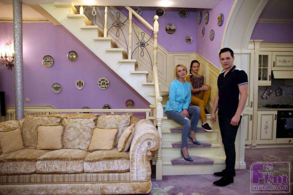— Сиреневому цвету довольно сложно подобрать «идеальную пару» — другой цвет, с которым он будет гармонично сочетаться, — поясняет Александр. – Но в этом случае дизайнерам хотелось быть смелее, они рискнули — и получилось интересное сочетание. — Но я больше люблю классику, в которой оформлены все остальные комнаты в доме. Потому что классика никогда не устареет. В таком месте чувствуешь себя так, как будто ты попал в старинную сказку. Приезжаешь, садишься с семьёй и друзьями на большой и уютный диван — и тебе уже хорошо, и больше ничего не надо… Кстати, многие вещи тут были состарены специально...