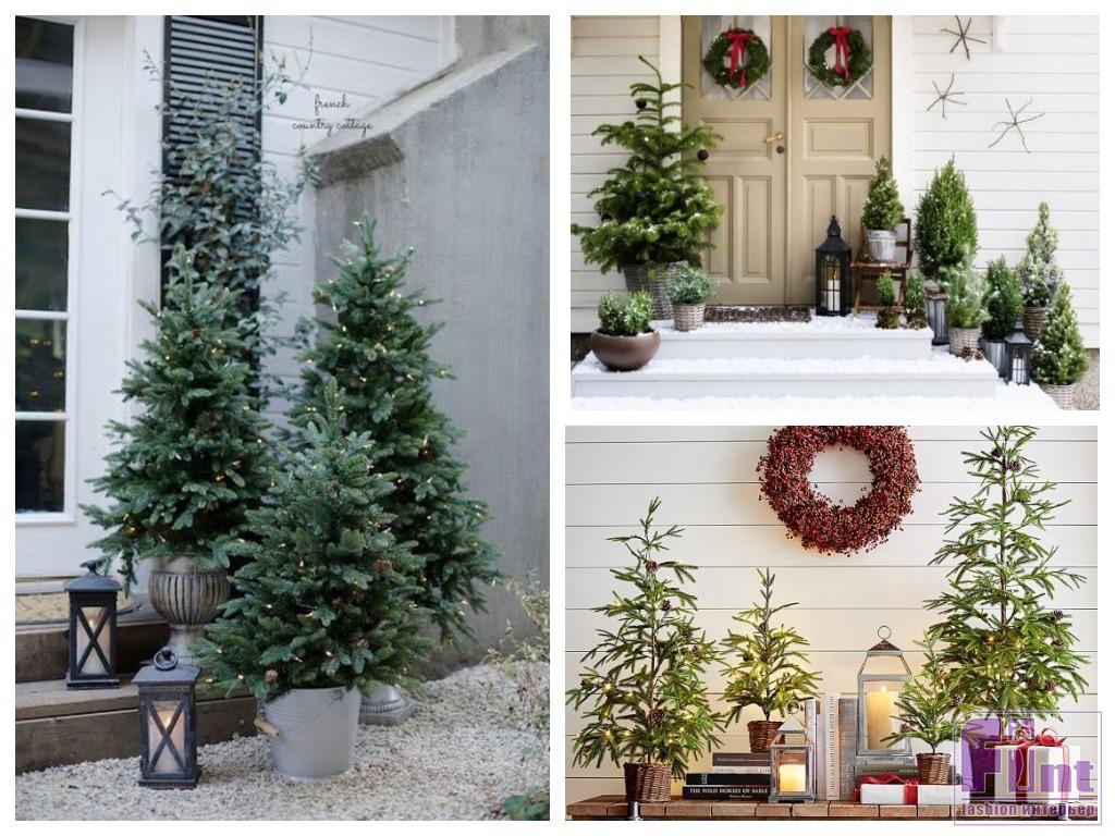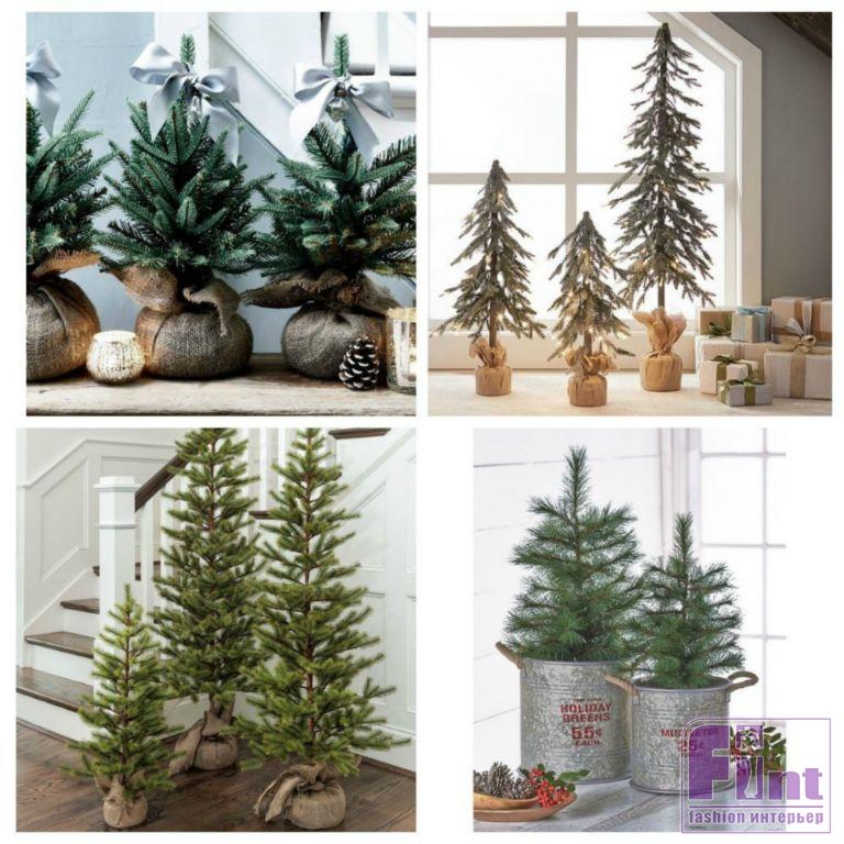 Такой еловый лес в миниатюре может украсить и крыльцо, и прихожую, и гостиную, и даже праздничный стол. Конечно, при условии, что деревца выбраны соразмерные: для настольных композиций подойдут маленькие Ёлочки, а в просторном холле нужны растения покрупнее. Если использовать для подобного декора живые хвойные растения в контейнерах, после праздника нужно позаботиться о них, чтобы свободолюбивое растение не погибло в «суровых» для него квартирных условиях.