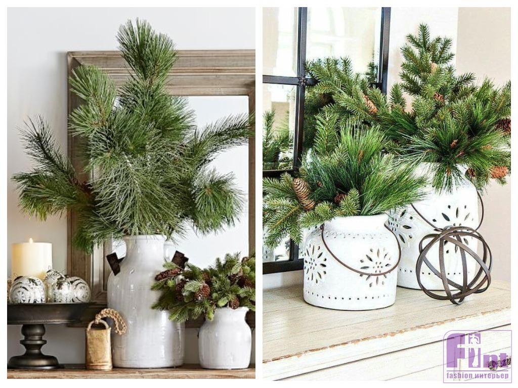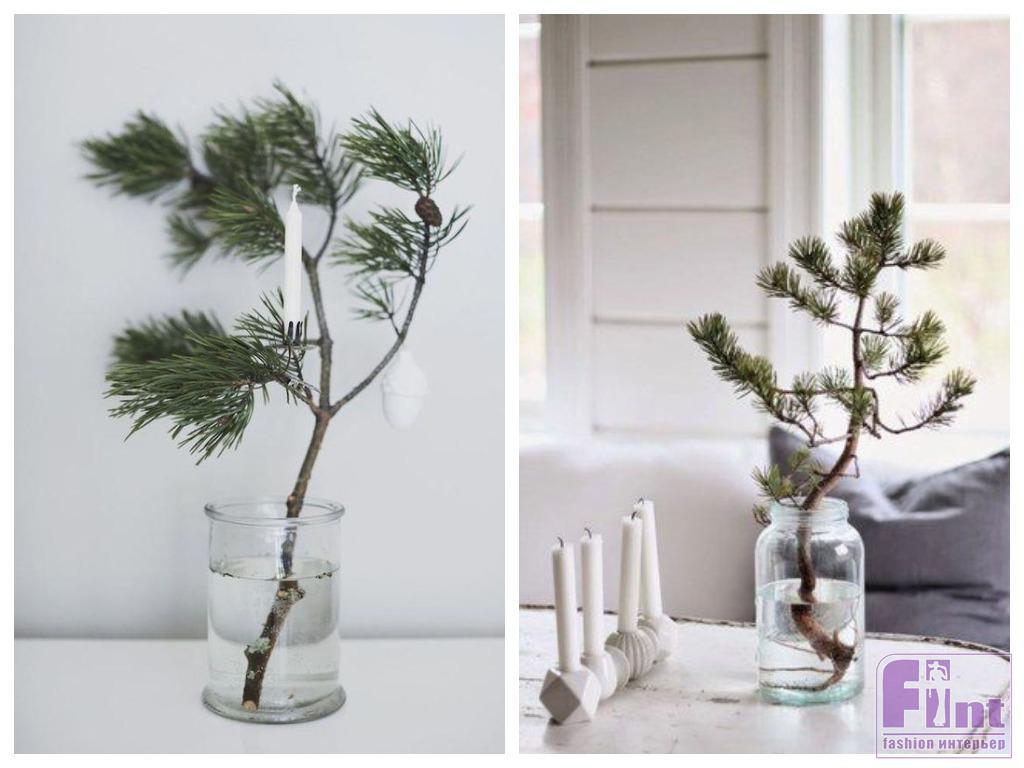 Бывает, что в тесной городской квартире сложно найти место даже для самой маленькой ёлочки. Выручают «букеты» из хвойных ветвей — еловых или сосновых. И обычно мы их тоже стараемся украсить, добавить новогодние аксессуары. А может быть, в этом и нет никакой необходимости?