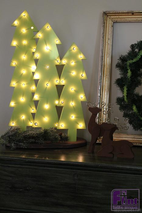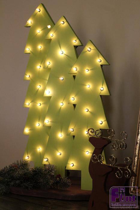 Деревянные новогодние ёлочки в стиле рустик с лампочками своими руками