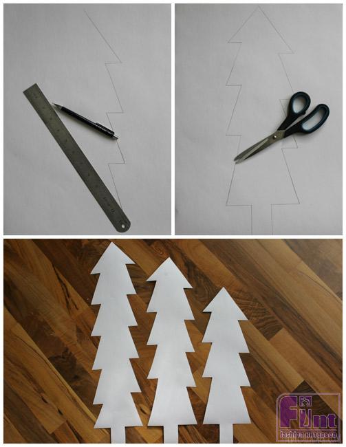 Шаг № 1: Для начала мы должны нарисовать наши будущие ёлочки на бумаге, чтобы получить шаблон для выпиливания новогодних деревьев. Рисуем ёлочки на обычной бумаге и аккуратно вырезаем их по контуру.