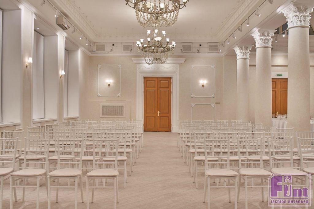 Кардинальная и глубокая реновация коснулась двух основных пространств Aura Grand Hall: основного банкетного зала и лобби, общей площадью в 350 кв.м. Помещения расположены на втором этаже дома старой постройки.