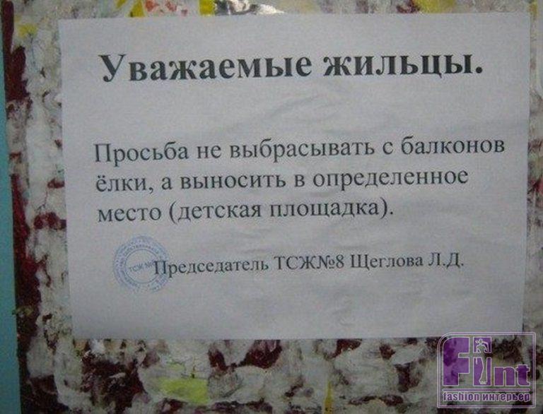 - Самым простым и, наверное, странным способом является выкинуть ёлку из окна, а после отнести её к мусорному баку. Так вы сможете избежать мусора в подъезде и на придомовой территории. Но есть риск, что ваш метод не очень понравится соседям и прохожим, ведь существует вероятность того, что дерево влетит кому-то в окно или на балкон. Кроме того, нужно строго проконтролировать, чтобы летящая ёлка не попала на человека, который просто шёл мимо ваших окон. Кстати, используя данный метод, вы освобождаете себя от мусора вне дома, но не внутри его, так как иголки в помещении всё же осыплются при попытке протолкнуть дерево в оконный проём. Несмотря на то, что мы рассказали об этом методе в шутку, многие наши соотечественники именно так и поступают, и, к тому же, не утруждают себя отнести потом ёлку на помойку! Так и торчат высохшие ёлки-палки из грязных сугробов!