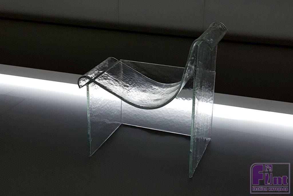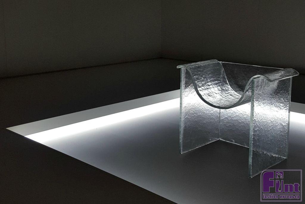 Для создания этой удивительной стеклянной мебели сначала изготавливают прямоугольные стеклянные листы. Затем несколько мастеров одновременно придают поверхности особую фактурность при помощи специальных железных «совков». По мере остывания, когда стеклянный лист достигает необходимой степени гибкости, его сгибают в U-образную форму, чтобы получилась красивая арка. Затем эти изогнутые заготовки сплавляют с прямыми деталями, получая эффектные минималистские стулья, кресла, журнальные столики и вазы.