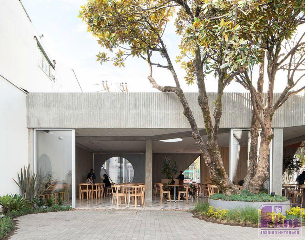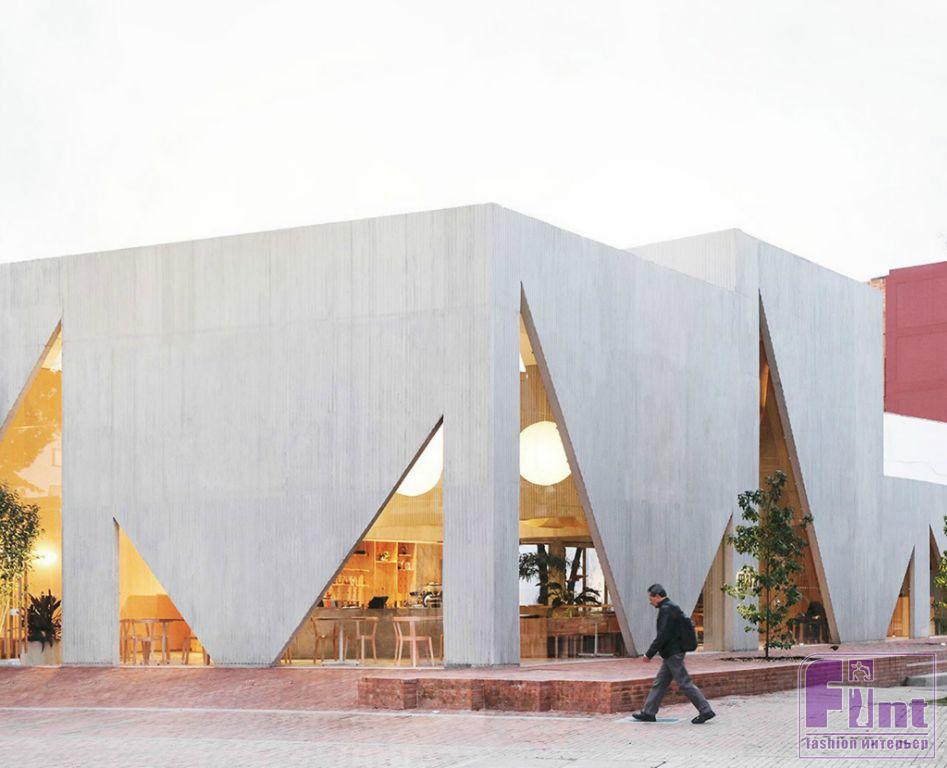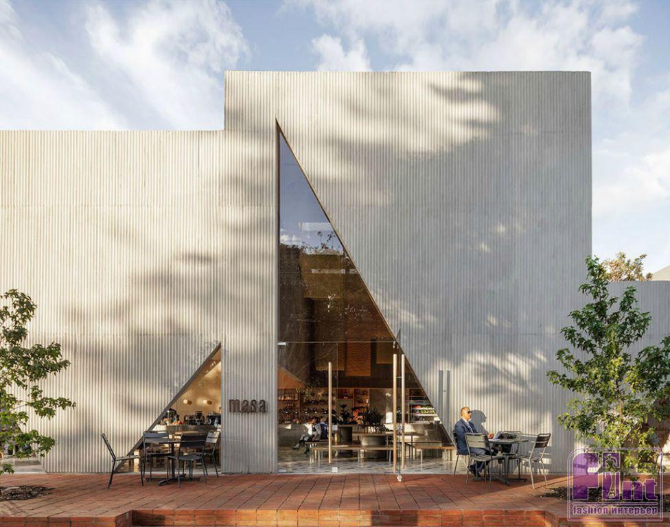 Колумбийское архитектурное бюро Studio Cadena построило в Боготе минималистский ресторан Masa, создав множество остроумных и эффектных сочетаний треугольных и круглых форм. Здание, в котором находятся кафе, пекарня и ресторан, расположено на углу двух улиц и состоит из трёх разных объёмов-параллелепипедов с рифлёными бетонными фасадами и крупными треугольными окнами в пол.