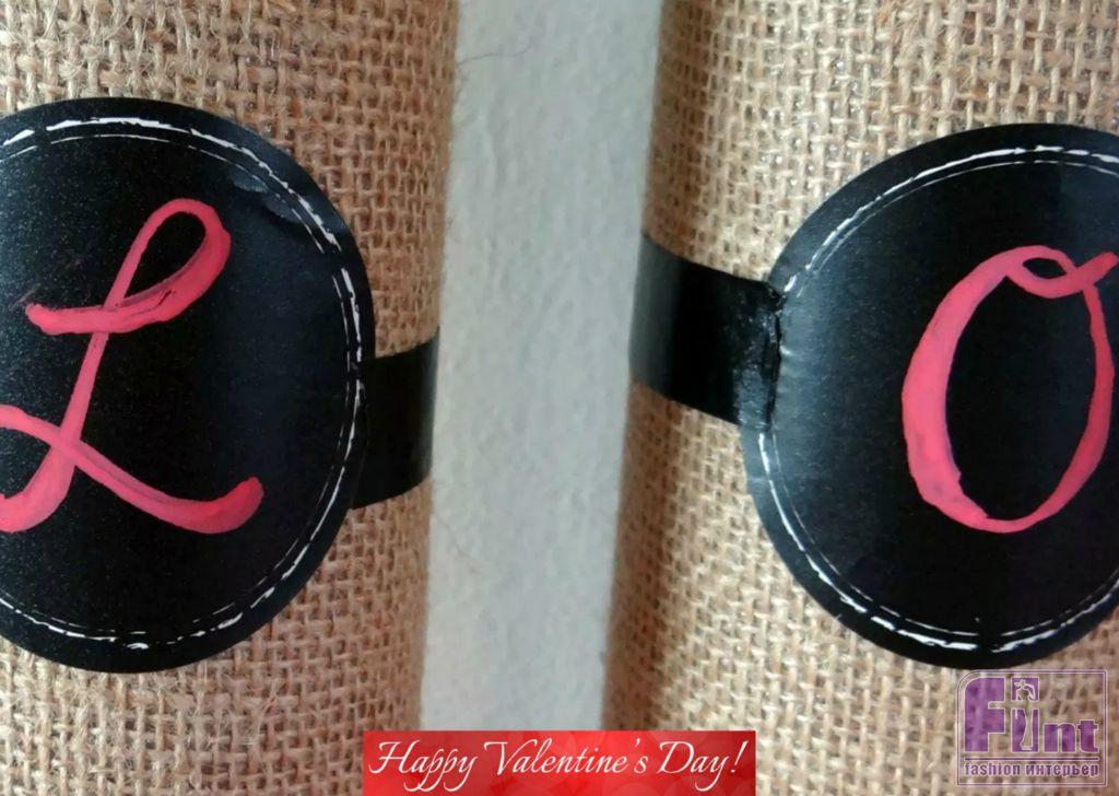 Поскольку мы делаем украшение интерьера ко дню Святого Валентина, мы выбираем подходящее слово. Самое лучшее слово в День всех влюблённых – это, конечно же, слово «любовь», или «LOVE». При помощи красного мелового маркера или обычных акриловых красок рисуем красивые буквы слова «LOVE», по одной букве на каждой бутылке.