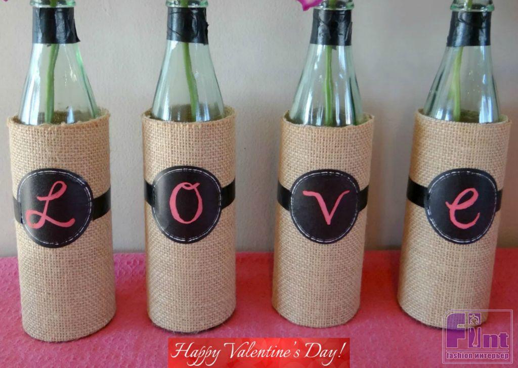 День всех влюблённых, или День Святого Валентина уже имеет в нашей стране свою историю. Этот праздник мы празднуем не один год, и каждый раз стараемся сделать что-то приятное своим любимым. Обычно для украшения интерьера к этому празднику люди используют всевозможные вариации на тему сердечек, которые всем уже изрядно поднадоели. Поэтому сегодня мы расскажем, как украсить свой дом ко дню Святого Валентина без сердечек, сделав очень стильные вазочки из обычных бутылок!