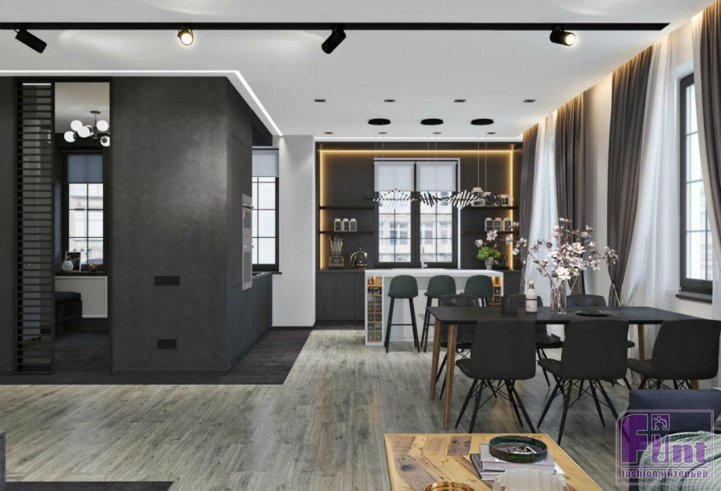 Уютный монохромный интерьер: «лёгкий» лофт для всей семьи