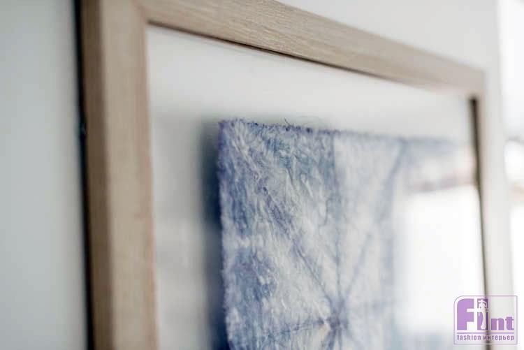 Осталось поместить нашу салфетку в рамку и повесить её на стену! Необработанные края салфетки, мягкие полутона и плавные переходы цвета, строгая деревянная рамка и глянцевая поверхность стекла – всё это соединённое воедино в нашем панно создаёт удивительно красивый эффект и очень органично вписывается в интерьер, особенно на фоне простых крашеных стен!