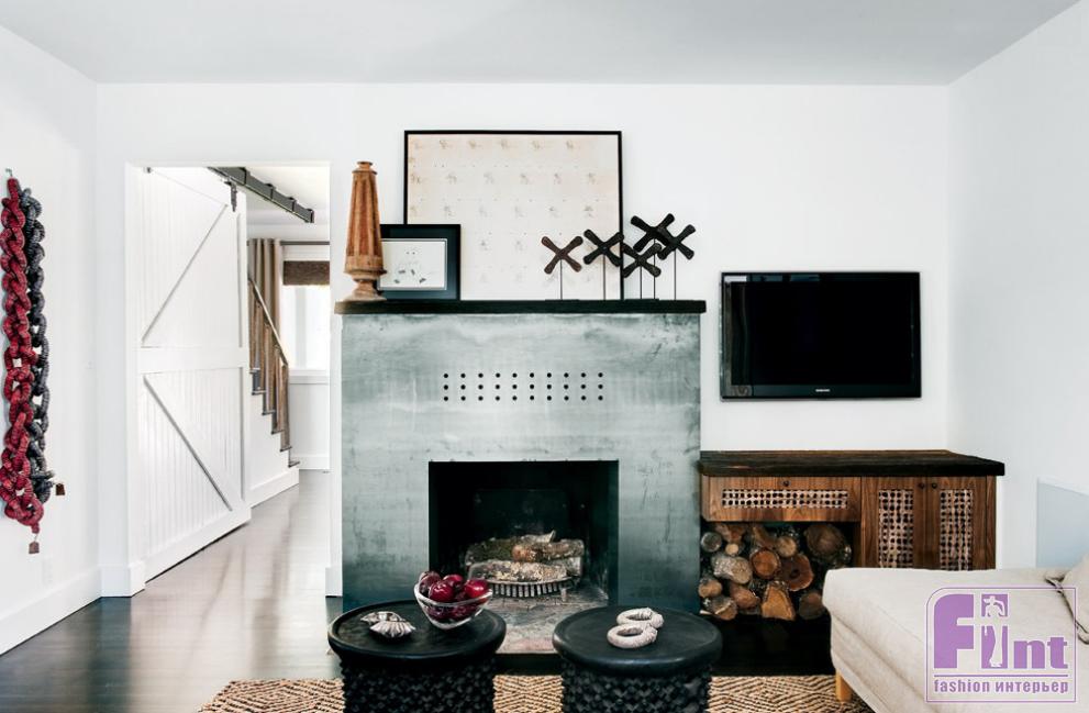 Наверное, самым естественным декором для зоны у камина были и остаются поленья. Аккуратно порезанные дрова, предварительно очищенные от пыли и грязи, вы можете укладывать в специальную нишу возле камина, в топку, если камин находится в нерабочем состоянии. При желании можно для этих же целей использовать декоративные ветки.