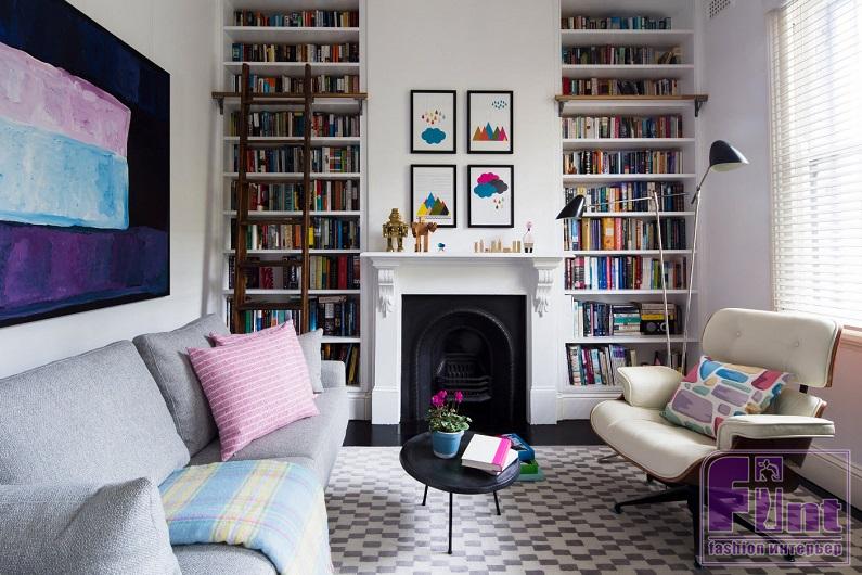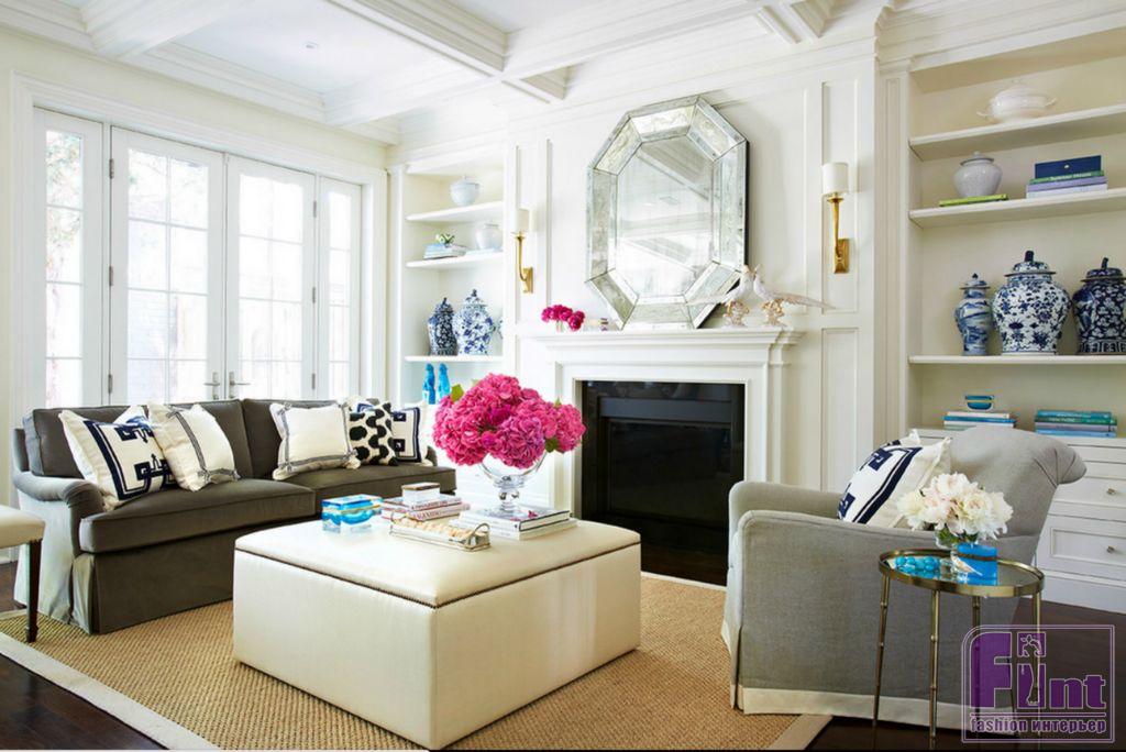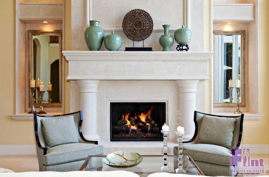 Каким бы ни был декор, располагая парные предметы симметрично, вы создадите очень характерную обстановку. Она статична, вселяет ощущение стабильности и очень уравновешивает пространство. Вы можете располагать в зеркальном отражении любые предметы интерьера в зоне камина — полки, стеллажи, комоды, книги, статуэтки, вазы и прочее.