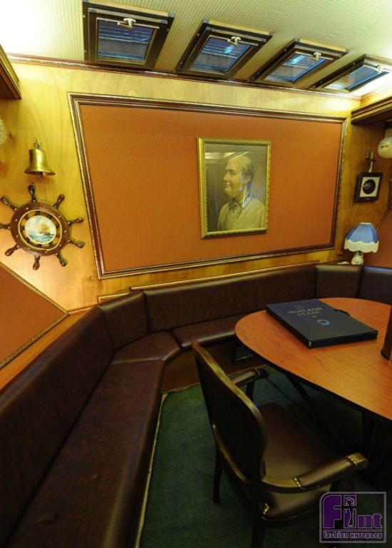 — Вот здесь — кабинет Виктора, — рассказывает Наталья. — Здесь же на диване спит наш сын Вася, а за этим столом уроки учит, когда заезжаем сюда в будни. Васе здесь очень нравится — он так не хочет уезжать отсюда домой! Как, впрочем, и дети наших гостей - все они всегда говорят, что хотели бы жить на корабле. Конечно, им здесь есть где разгуляться и даже где разбежаться — от кормы до носа 78 метров!