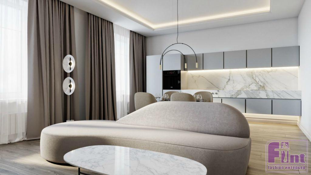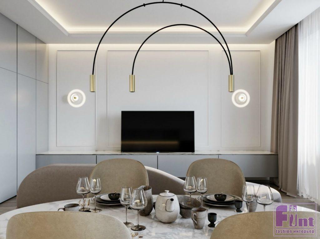 Стиль проекта автор определила как лёгкую классику. Сложный, лепной декор заменили здесь на лаконичные молдинги, мебель выбрали современную, мягких, округлых форм, а особое внимание уделили свету. Именно дизайнерские светильники придают пространству торжественность, отмечает Анна.