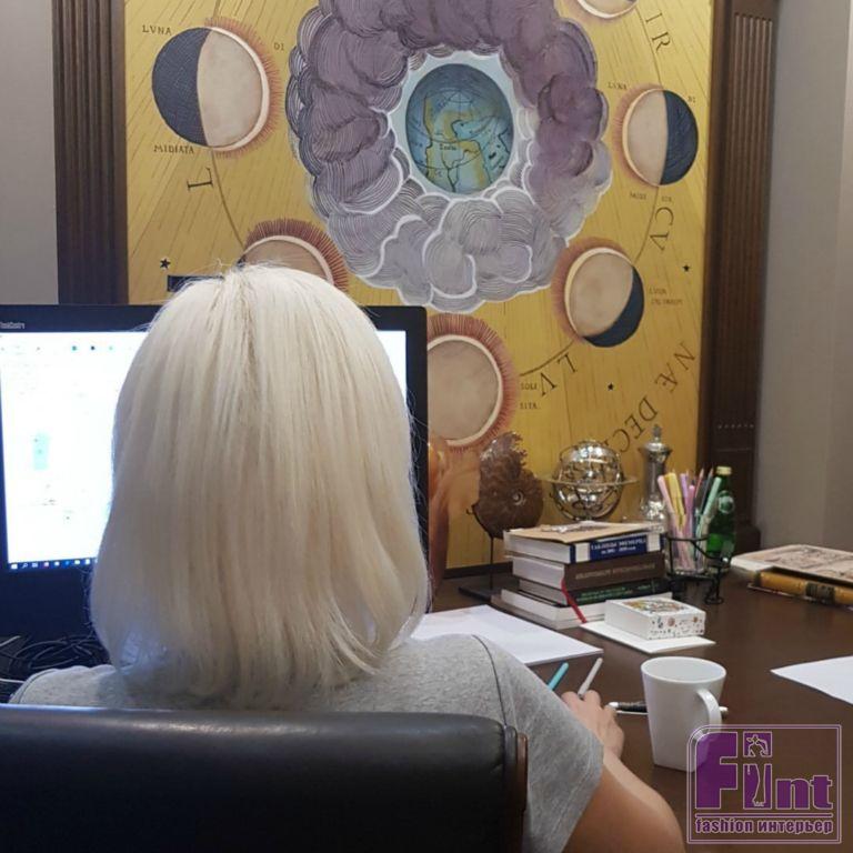 Святая святых Василисы — её рабочий кабинет с изображением Солнечной системы во всю стену. На противоположной стене — фотообои в виде огромного книжного шкафа. Здесь стоит стол с компьютером, с помощью которого Володина составляет астрологические прогнозы для своих клиентов. В кабинете, помимо оформления, много атрибутов, которые указывают на род деятельности хозяйки. Например, оригинальные часы, подаренные супругом на Всемирный день астрологии.