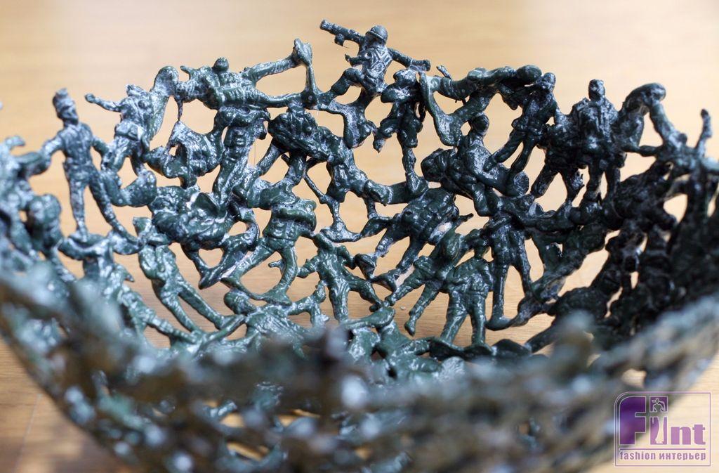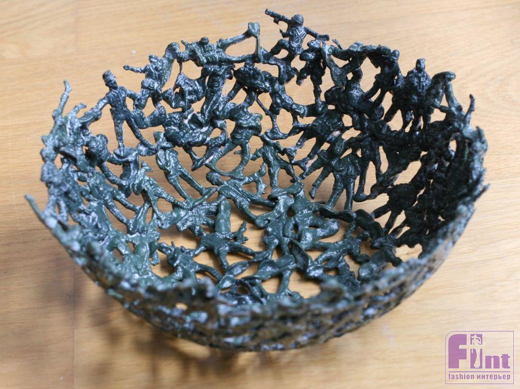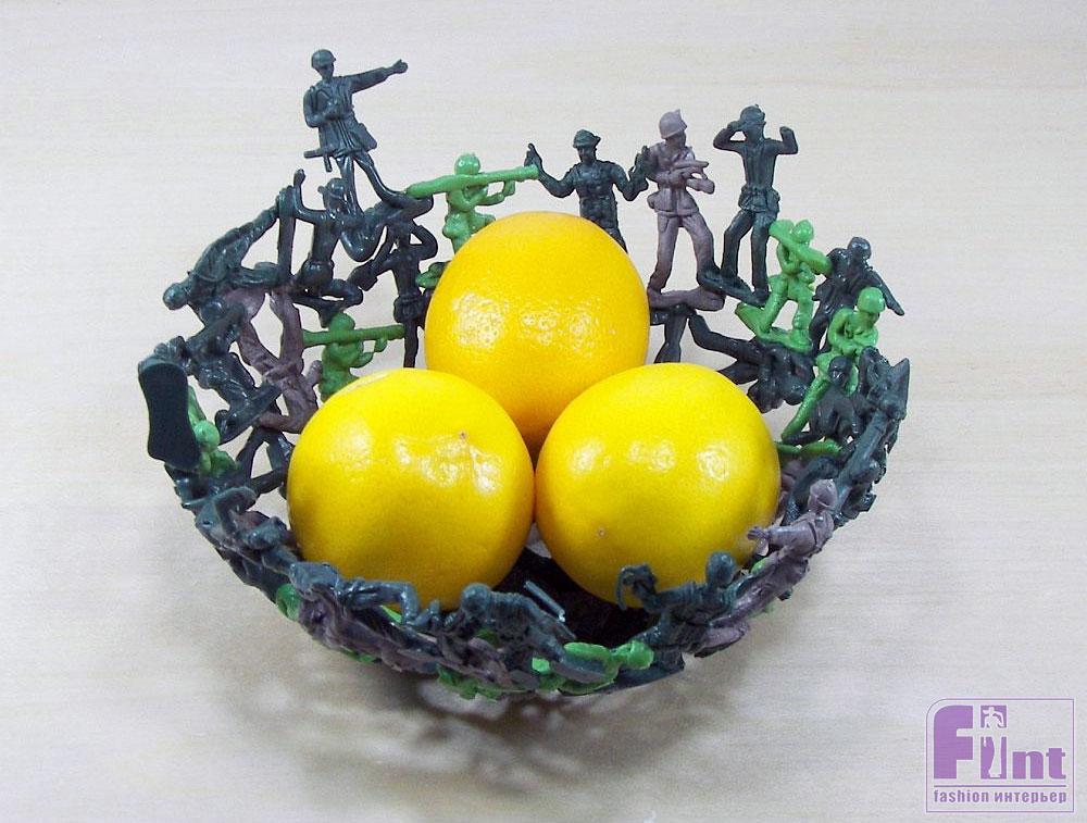Ваза для фруктов – очень нужный и востребованный в домашнем хозяйстве предмет сервировки, особенно с наступлением весны и лета, когда фрукты прочно входят в наш рацион. В продаже существует невероятное разнообразие ваз для фруктов, сделанных из самых различных материалов: от стекла и до металла. Но вазу из детских пластиковых солдатиков вы, вероятно, не видели ни разу! Да и купить её вряд ли получится, поэтому сегодня мы расскажем, как сделать эту удивительную вазу для фруктов из пластиковых солдатиков своими руками! Самое приятное, что стоимость такой прекрасной вазы едва ли превысит 250-300 рублей – ведь примерно столько стоят два или три набора простых игрушечных солдатиков!