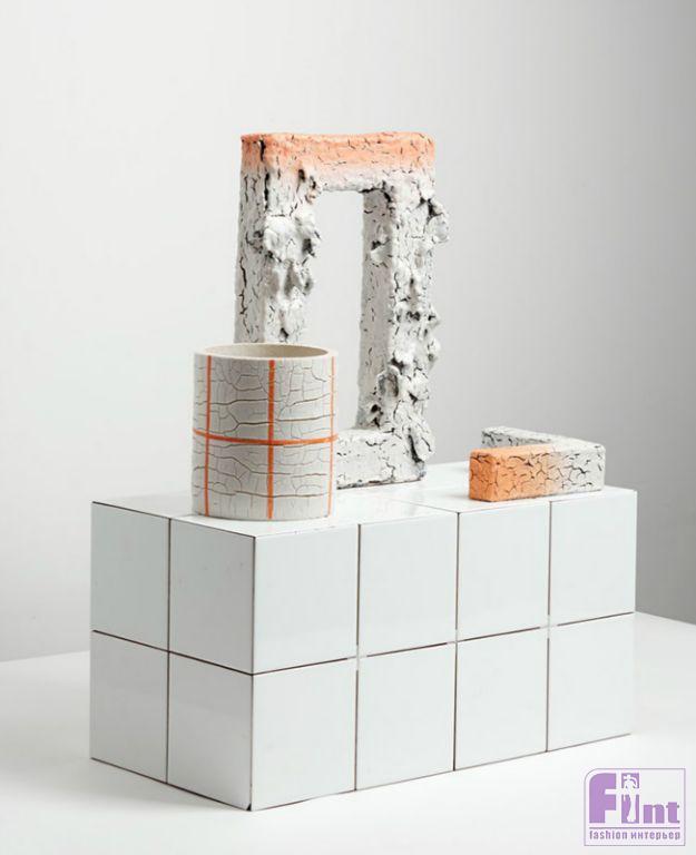 На скульптурные формы из шамотной глины, Ирина накладывает различные слои глазури, глины и обжигает таким образом, что поверхность как будто стареет, отшелушивается, опадает и трескается, подобно коре дерева. На Миланской неделе артистичная керамика Ирины Разумовской представлена сразу на трёх престижных площадках.