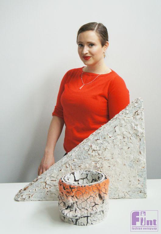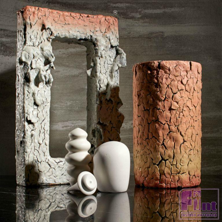 На скульптурные формы из шамотной глины, Ирина накладывает различные слои глазури, глины и обжигает таким образом, что поверхность как будто стареет, отшелушивается, опадает и трескается, подобно коре дерева. На Миланской неделе артистичная керамика Ирины Разумовской представлена сразу на трёх престижных площадках.